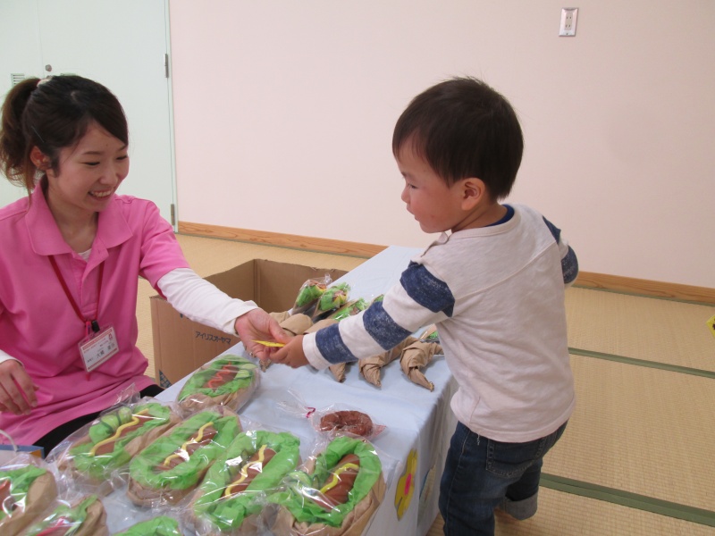 パン・お弁当屋さん。ハンバーガー、おいしそうだね。これを買おうよ。