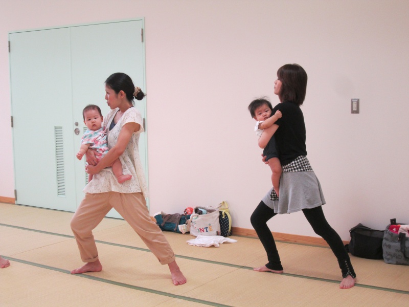 ベビーヨガの始まりです。みんな集まってご挨拶。