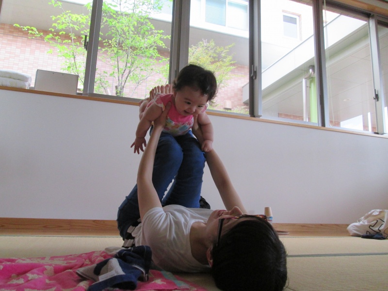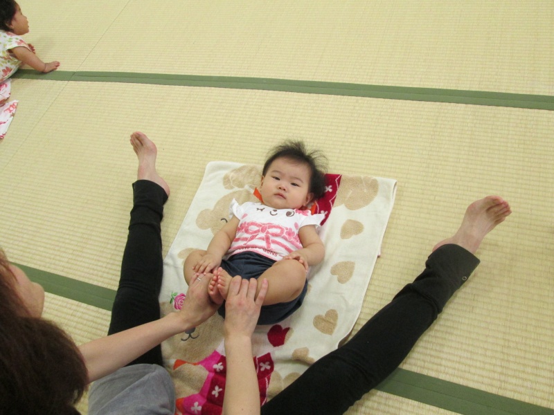 今度は、赤ちゃんも手を伸ばして体操です。