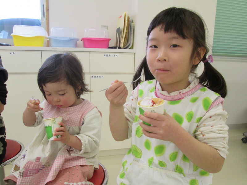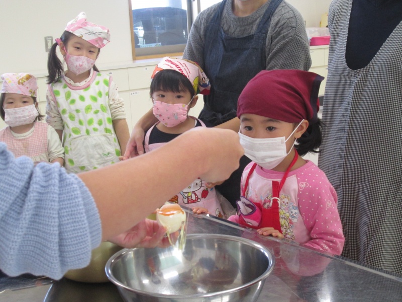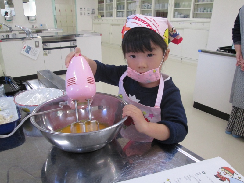 卵白でメレンゲ作り。ママ、しっかり押さえてて。