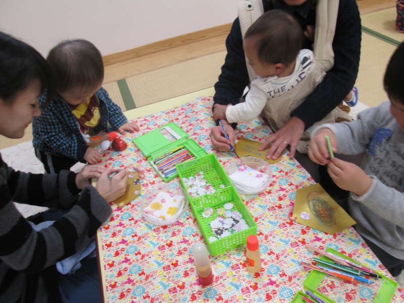 お花をペッタン絵馬をかわいく飾りましょう。