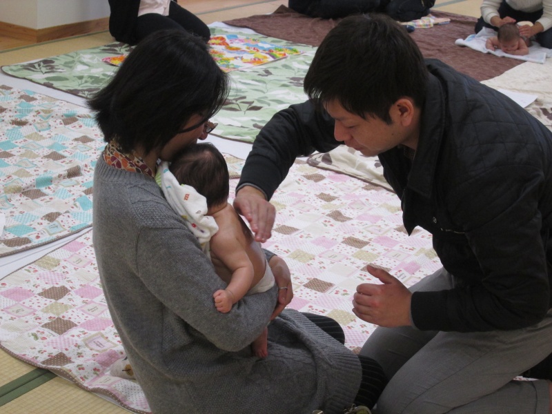 “おしまいはパパ抱っこで リラックス♡”