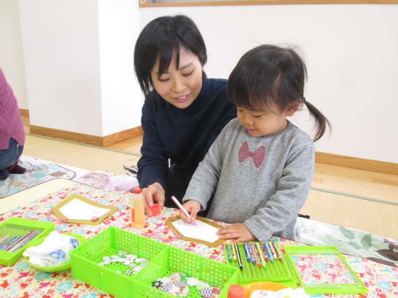 お花を貼って絵馬づくり。