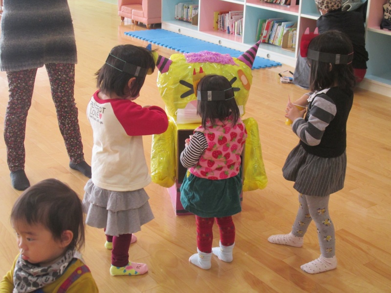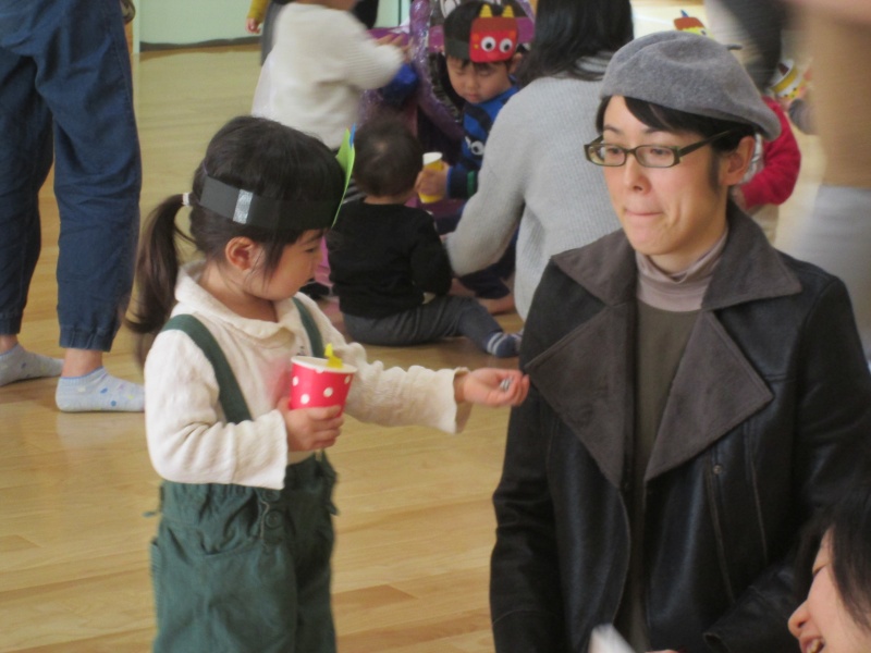 ママも一緒に豆まきをしよう。はい、どうぞ。
