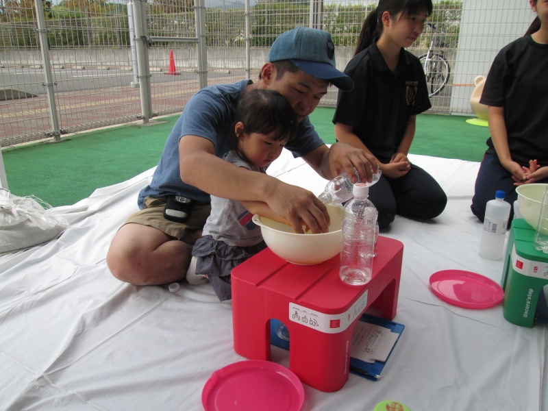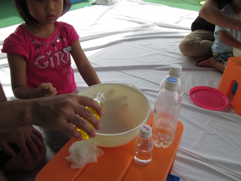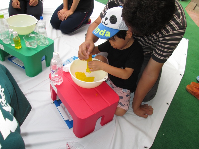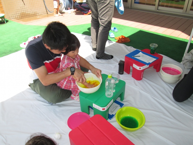 パパと一緒にスライム作りスタート!ぬるぬる洗濯のりに