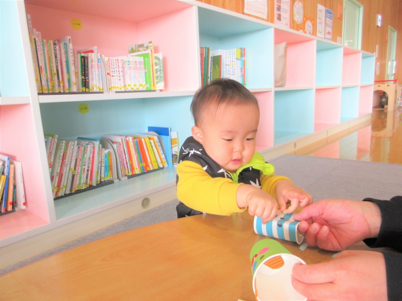 絵本の読み聞かせや、ふれあい遊び、製作や、テラスでのシャボン玉あそびなど、