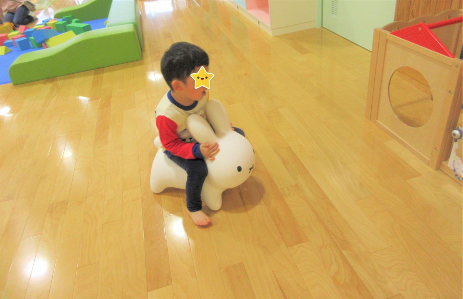 たにっこりんのうさこちゃんに乗って広場を散策♫