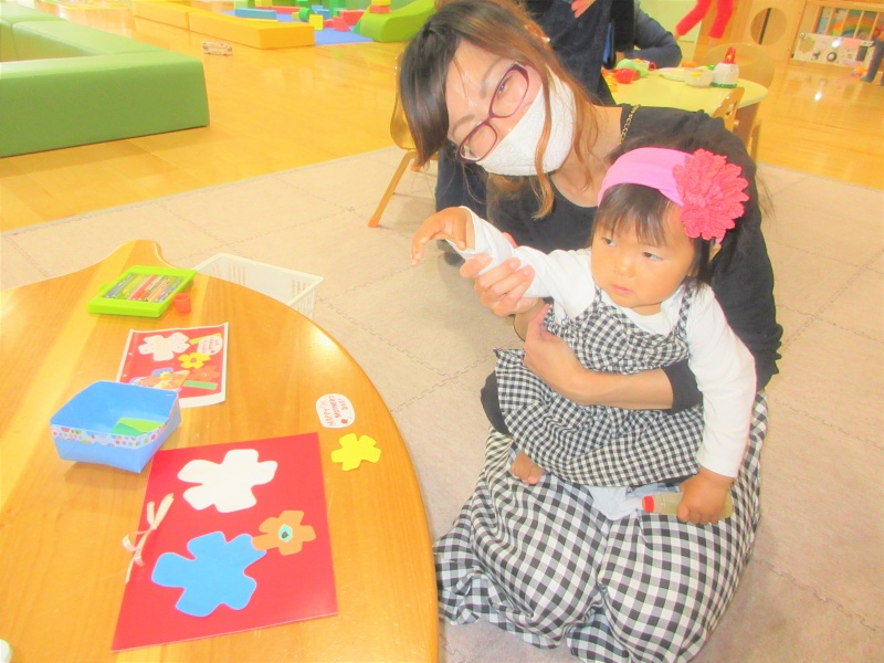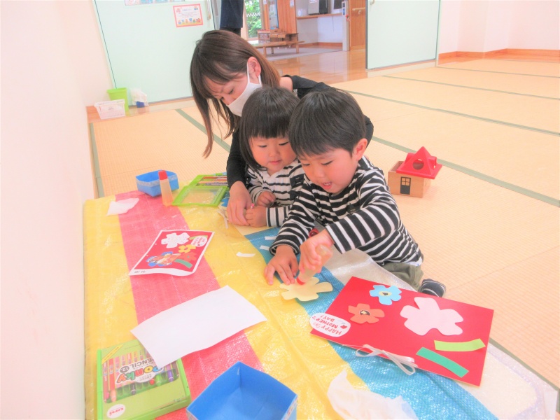 みんなママの為に一生懸命お花のボードのプレゼントを作っていました!