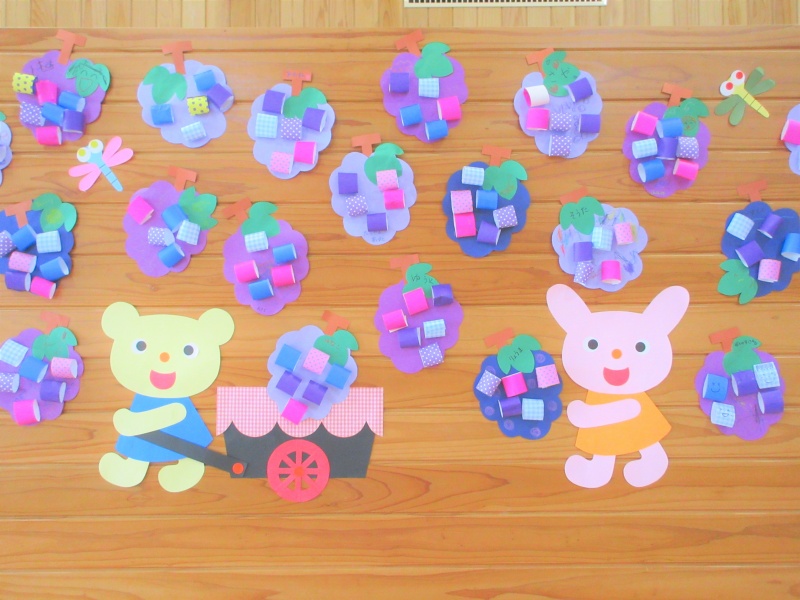 このぶどうは、8月4日の壁面製作で、たくさんのお友だちが作ってくれたぶどうです!