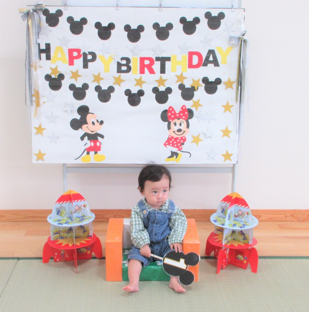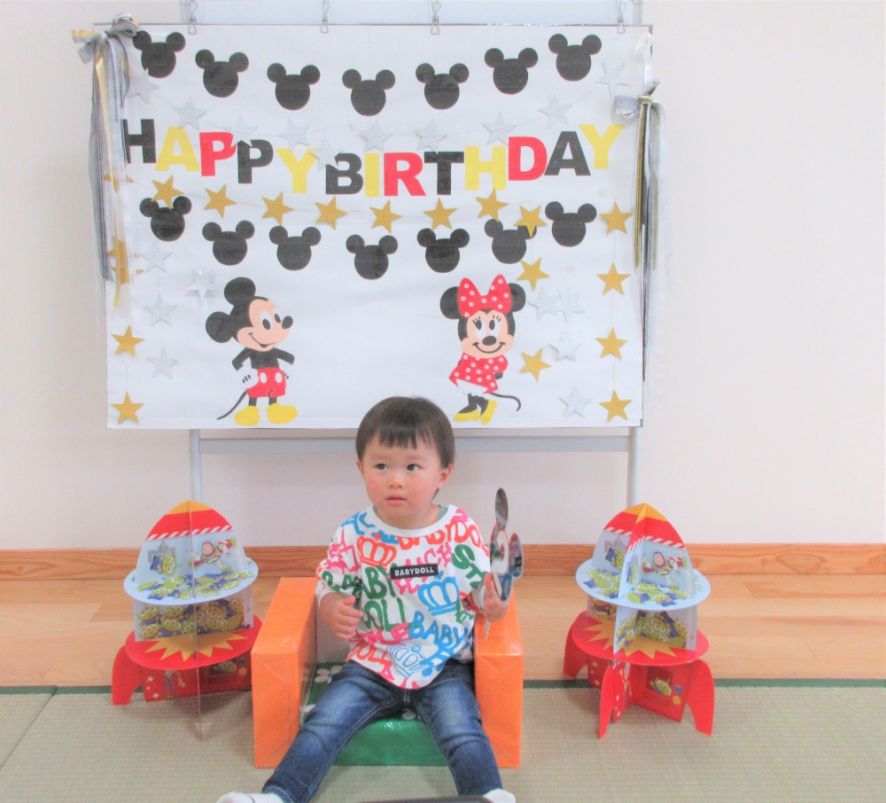 10月22日(金)午前中に誕生会がありました。お母さん方やスタッフに「おめでとー♫」とバースデーカードをもらった後、写真コーナーで記念写真をたくさん撮影してました!!