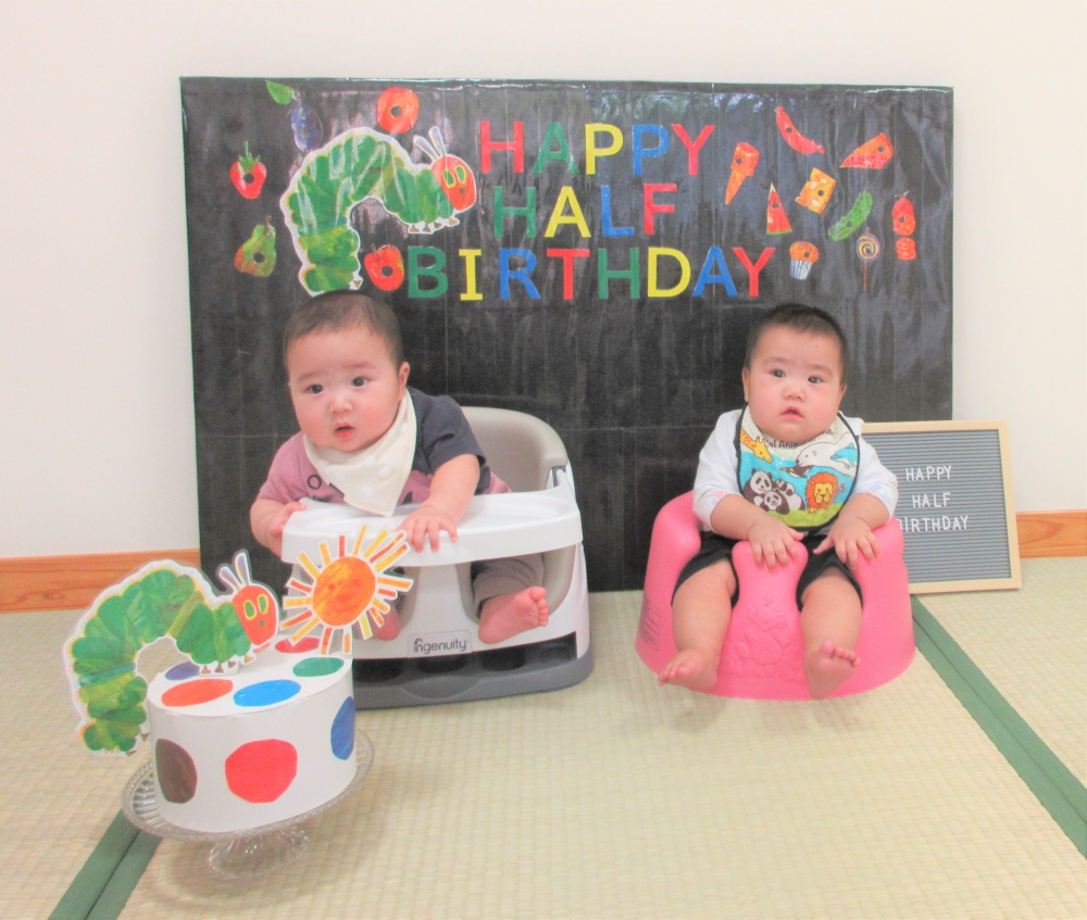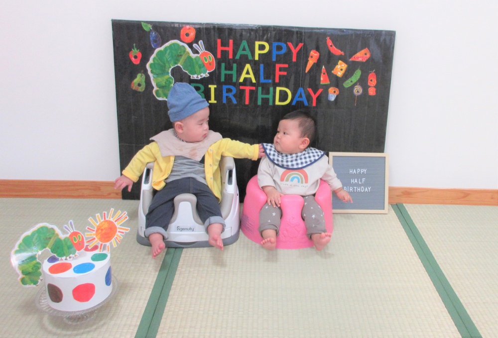 午後はハーフバースデーがありました。生後6カ月のおともだちが勢ぞろいして、ポスターをもらったり、写真コーナーでおともだちと撮影したりして過ごしました♫