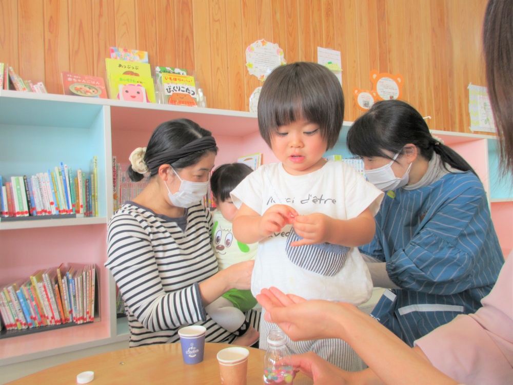 次の日、「お家に帰ってからも自分で作ったおもちゃでずっと遊んでいましたよ!」と嬉しい言葉を頂き、スタッフもにっこり幸せな気持ちになりました(^^♪