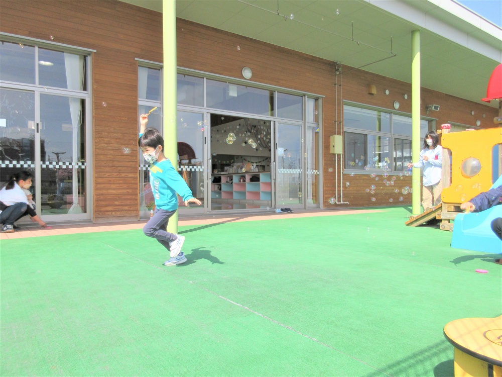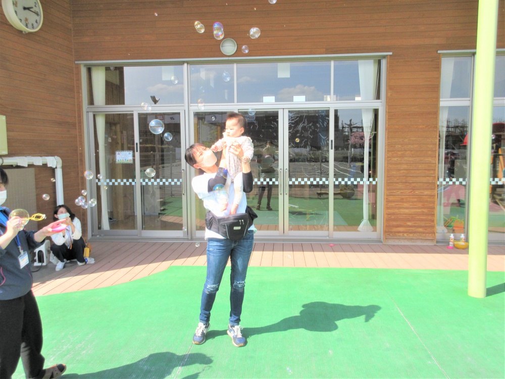 お天気が良い日は、お花見しながらシャボン玉遊び!!