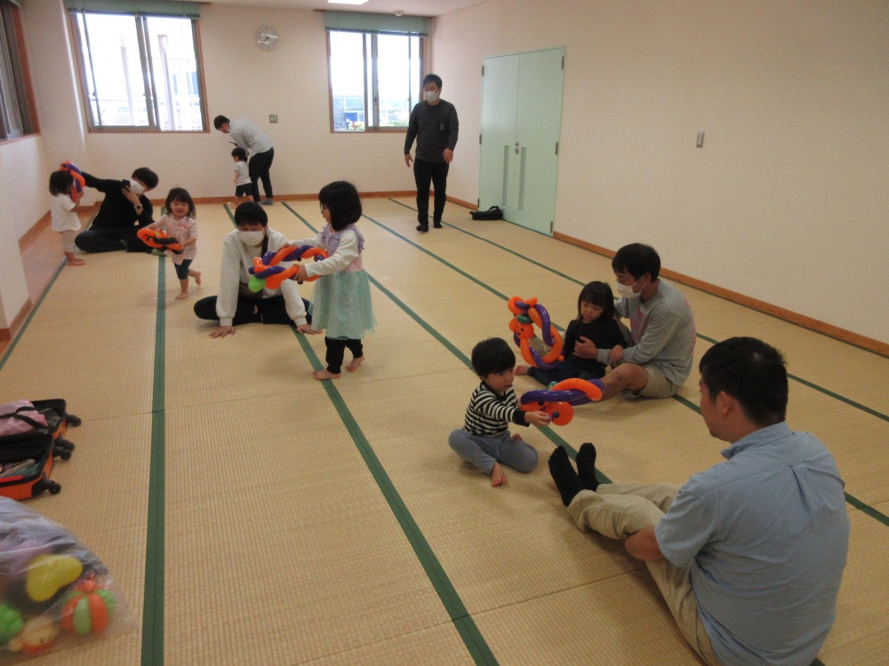 長い風船を2本ネジネジするとき、割れないかちょっぴりドキドキしている様子でした。