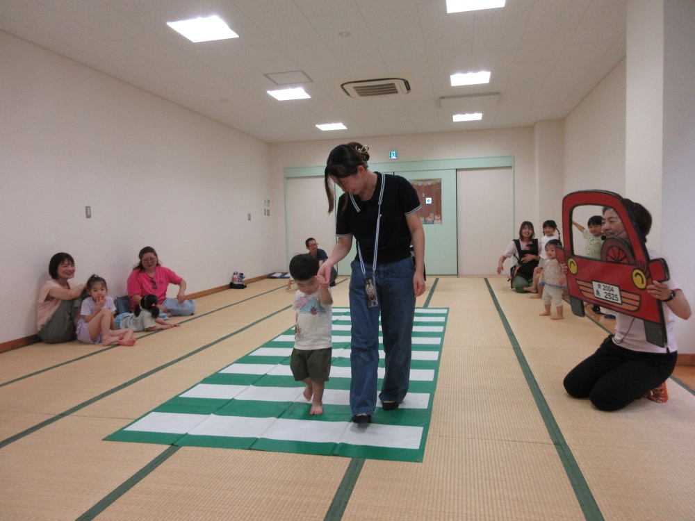 横断歩道を渡るときは、車の中から小さいお友だちが歩いているのが分かるように