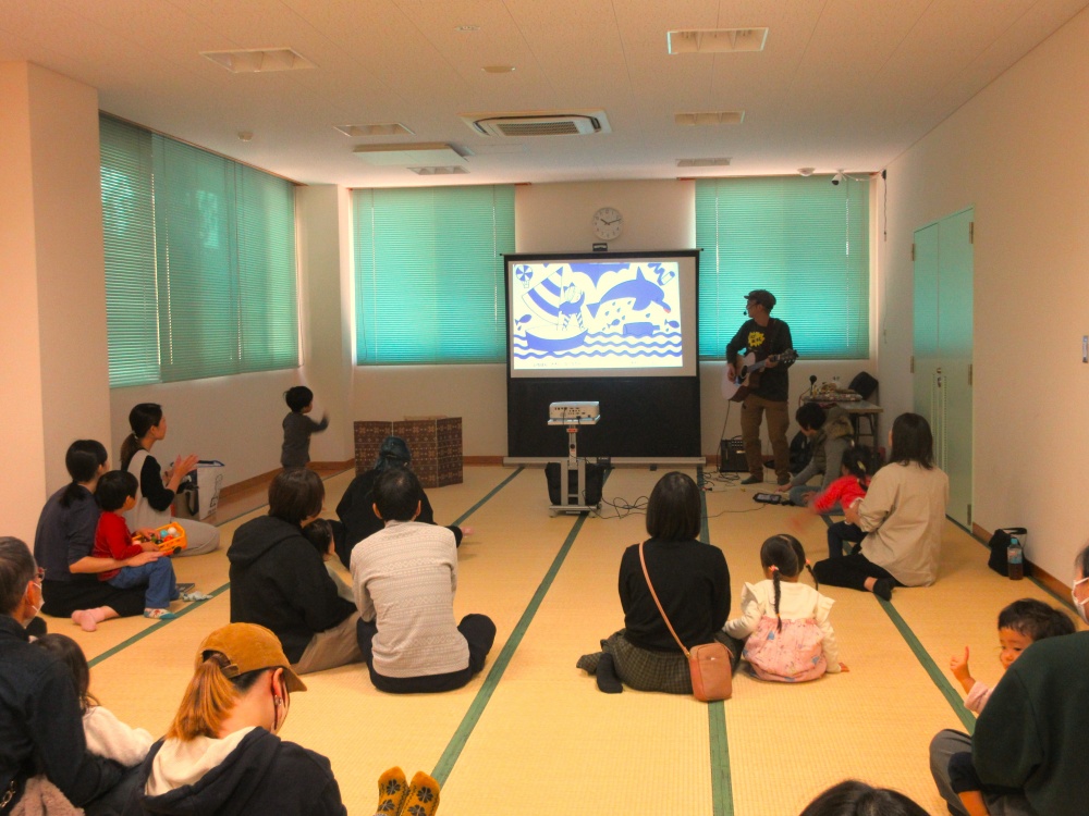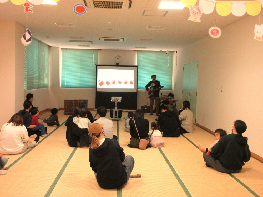 ギターの音色にあわせて絵本のお話を歌ったり、