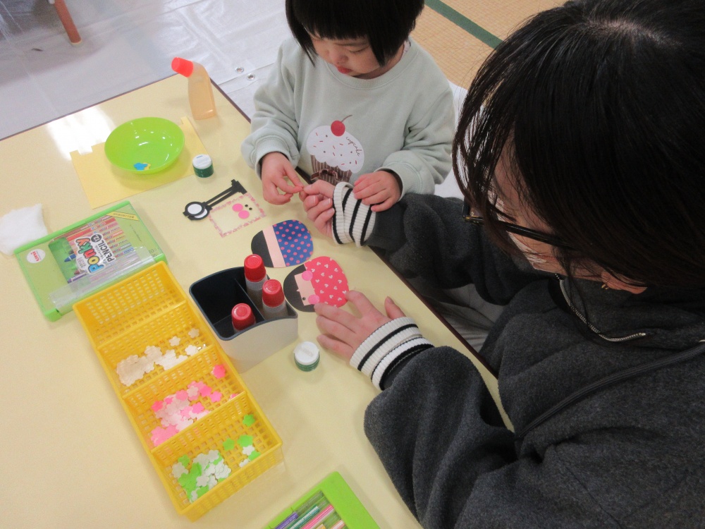 雛飾りは毎年パーツが多いので、お友だちもお母さんたちもドタバタ!笑